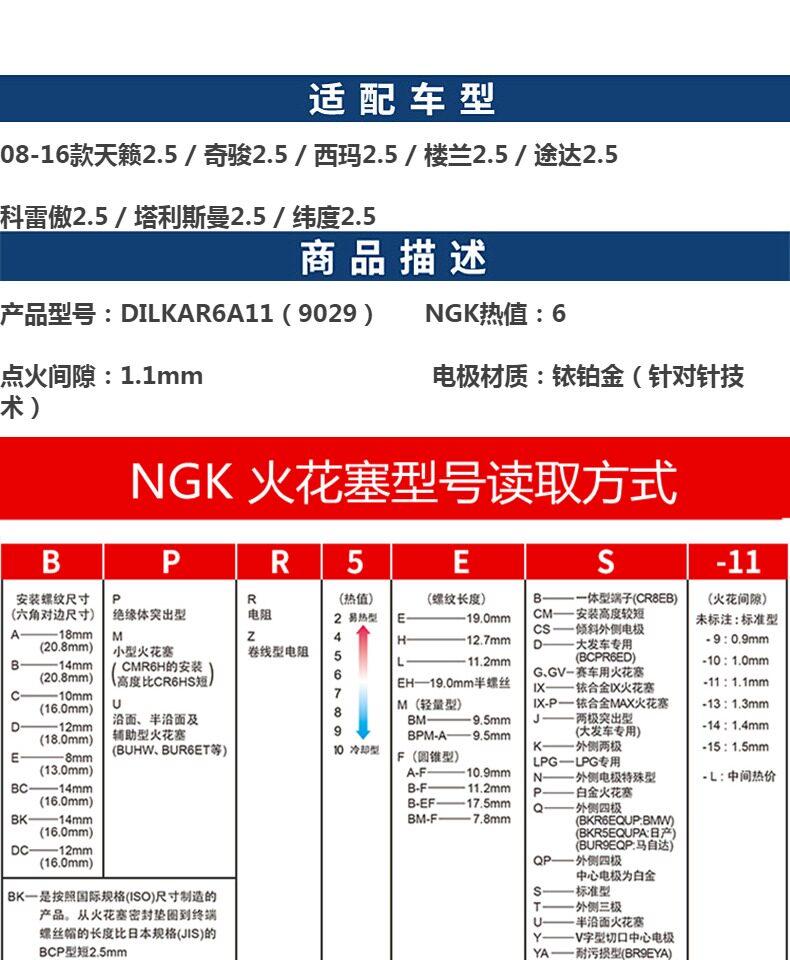 NGK 配 Платиновая свеча зажигания, адаптируясь к Renault Kori Talisman Qijun New Teana 2.5 3.5