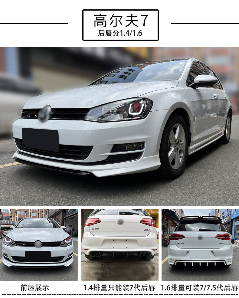 Применимо 14-20 гольф 7/7,5 модификационные спортивные модели окружают юбку с передней губами и крыло для губного хвоста на заднем плане.
