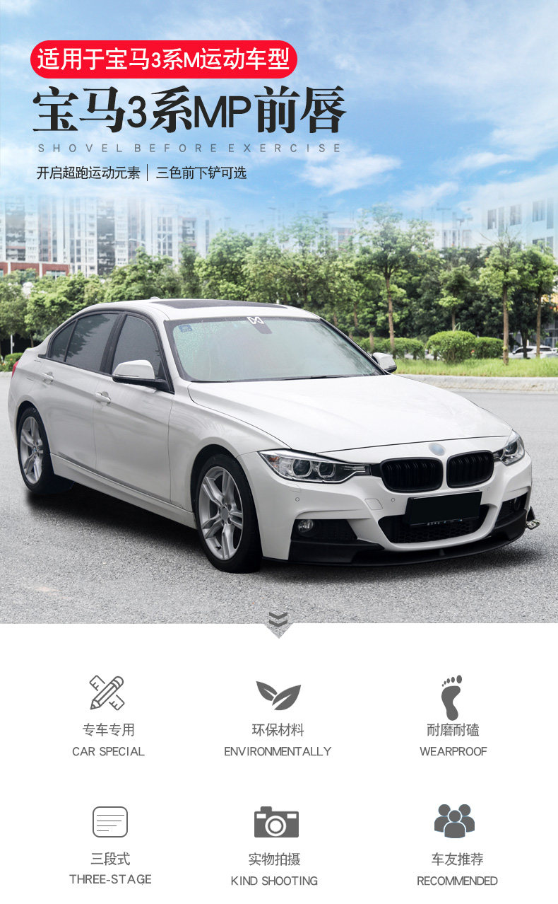Подходит для BMW New 3 -серии модифицированных MP MP, передняя губа перед губой, Shovel, Yao Night Version 320L