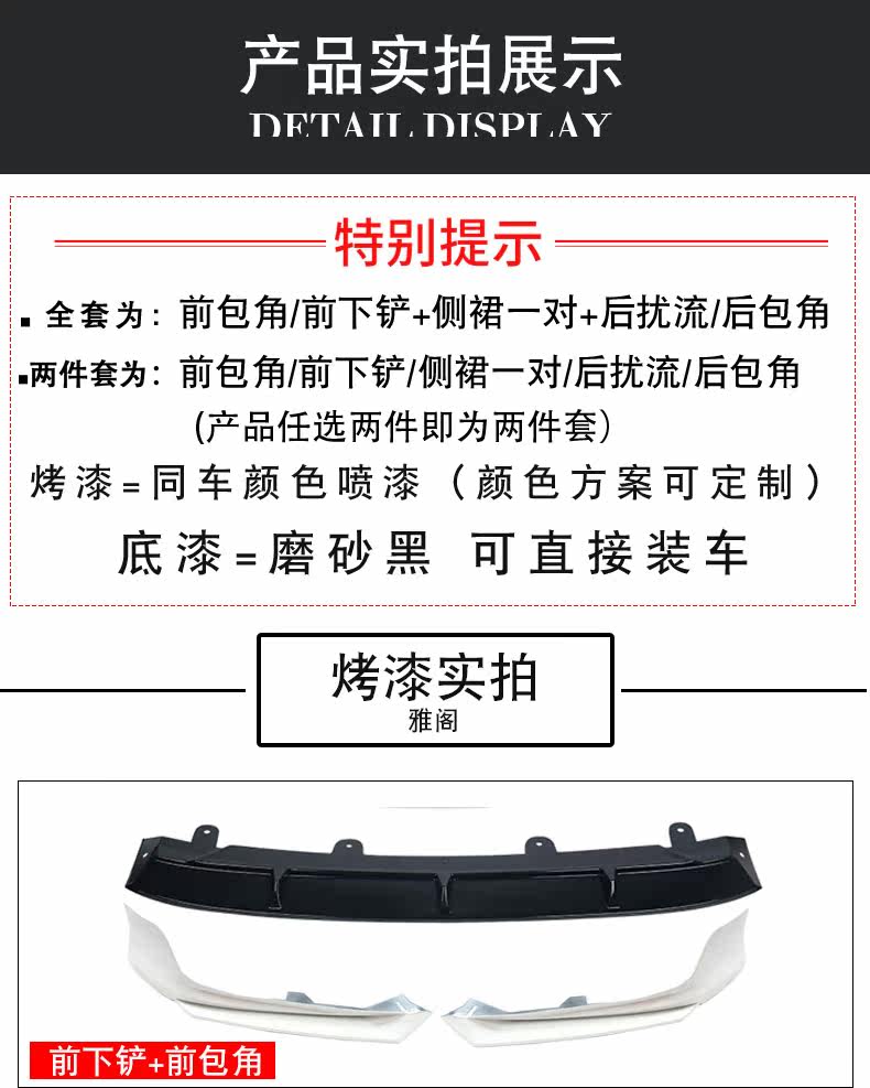 | Цвет: | Передний угол + передний лопаток - грунтовка, Боковая юбка/пара, Угол на заднем крышке + задняя губа - грунтовка, Полный сет-праймер, Угол передней обертки + передний лопаточный шпатель - краска (цвет замечания), Боковая юбка/пара (замечание цвета), Угол обертки + задний губа - краска (цвет замечания), Полная установка (замечания цвета), Из нержавеющей стали, 1 пары, Углеродное волокно четырех хвостового горла - 1 пара, Придвор (без цвета), Хвостовая крыла (замечание цвета), Перенос крыла хвоста (картина углеродного волокна) |