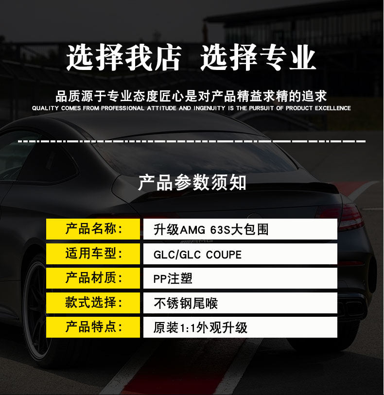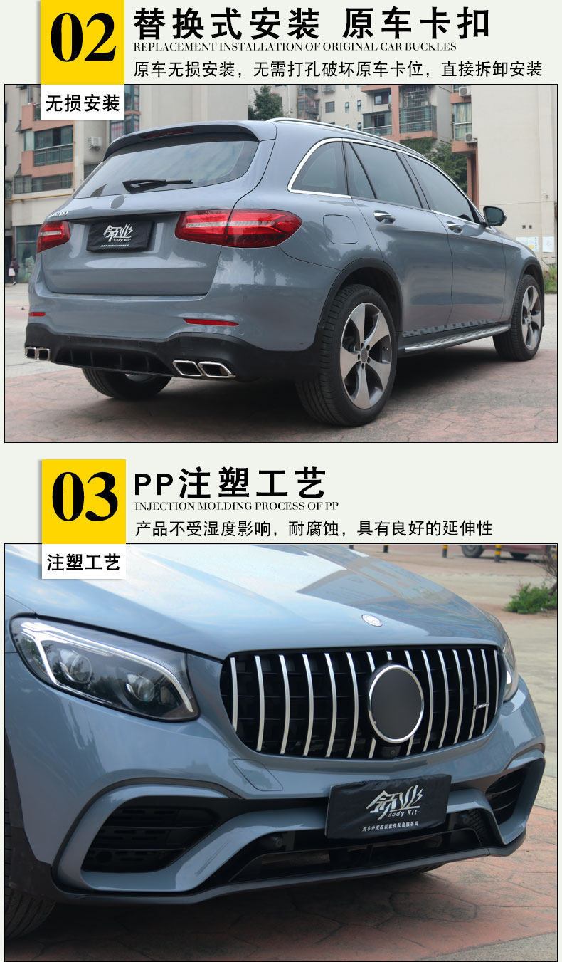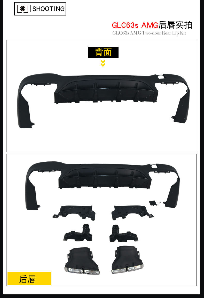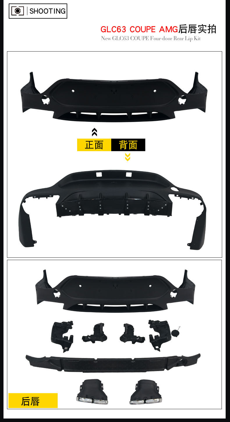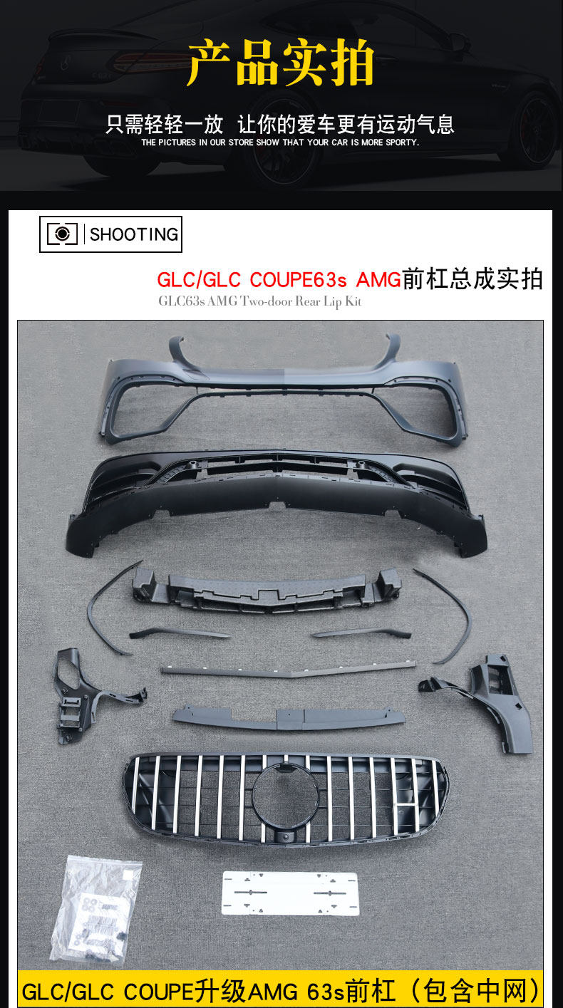 Подходит для Mercedes-Benz GLC модифицированного GLC63SAMG с большой рамкой COUPE300, вертикальная решетка заднего крыла, задняя губа, хвостовое горло.