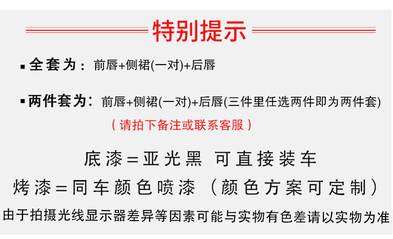| Цвет: | Передний погрузчик с губами, Боковая юбка/пара, Задняя часть губ, Комплект, полный комплект, Полный сет-праймер, Передняя помада (многоцветная дополнительная), Боковая юбка/пара (многоцветная дополнительная), Задняя полоса губы (многоцветная дополнительная), Комплект, полный комплект, Полная установка (многоцветная необязательная), Хвостовая полость (многоцветная опция) |