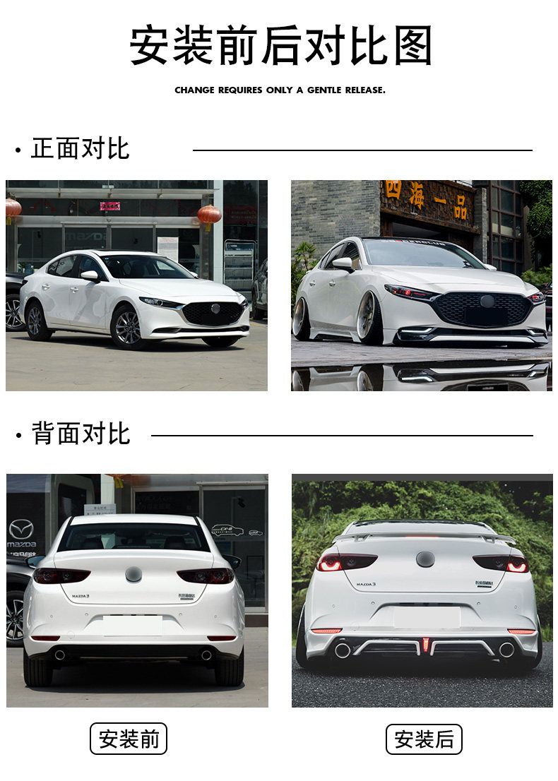 Применимо к Yofer 20 поколений поколений Mazda 3 Angkara Размер модификации окружает переднюю и заднюю юбку для губ