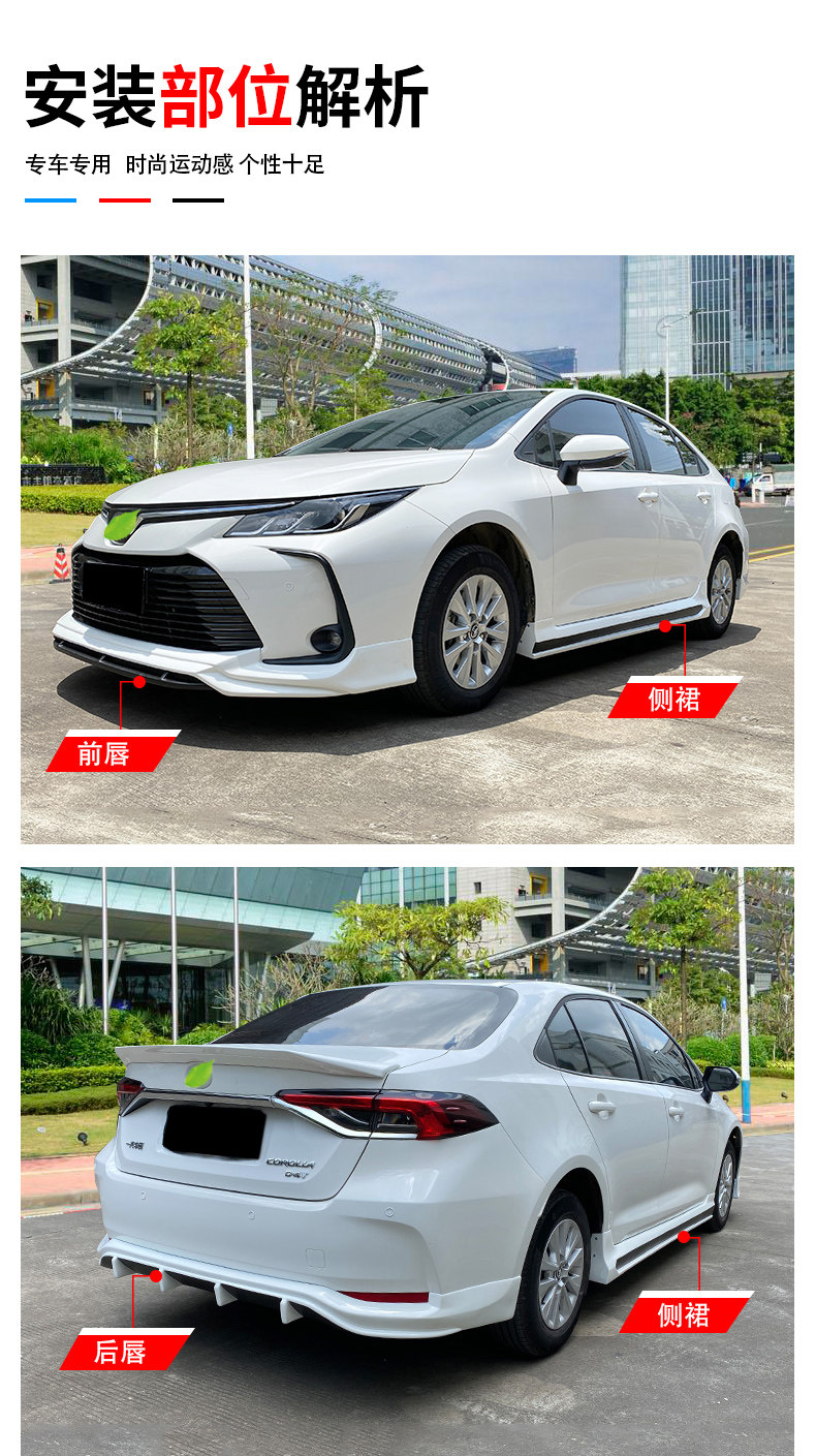 Применимо 19-21 Новая модифицированная Corolla Siege Siege Передняя губа передняя лопата боковая юбка боковая хвостовая крыло хвоста