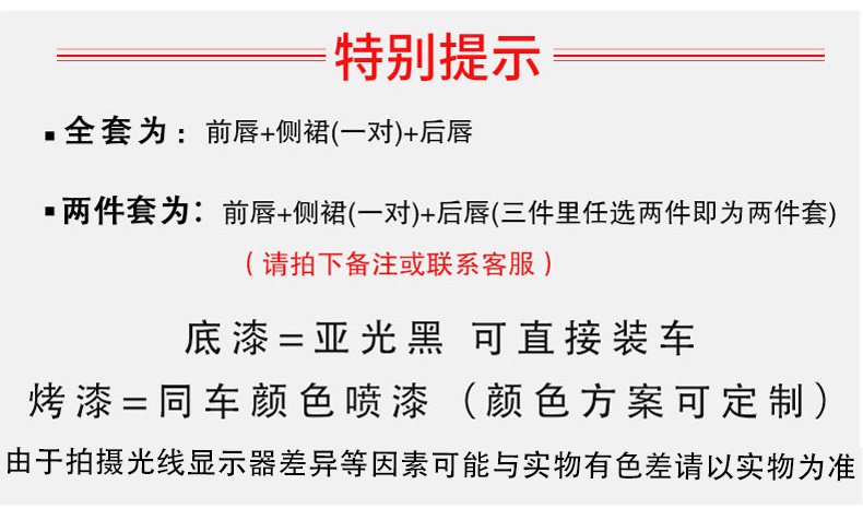 | Цвет: | Передний погрузчик с губами, Задняя часть губ, Боковая юбка/пара, Комплект, полный комплект, Полный сет-праймер, Полный набор краски+хвост, Передняя помада (многоцветная дополнительная), Задняя полоса губы (многоцветная дополнительная), Боковая юбка/пара (многоцветная дополнительная), Комплект, полный комплект, Полная установка (многоцветная необязательная), Хвостовая полость (многоцветная опция), Полный набор краски+заднего крыла |