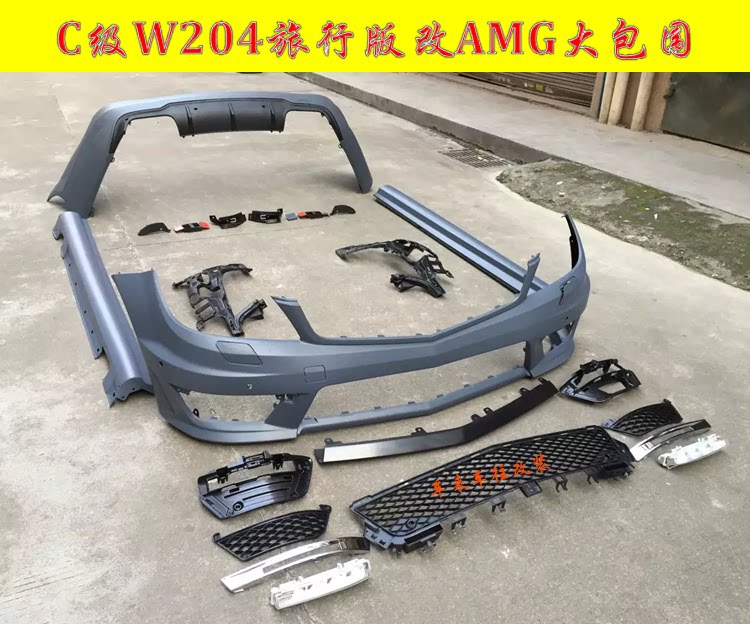Подходит для Mercedes -Benz W204 C200 Travel Edition Модификация AMG Big Broken Front Bummer задний и задний бампер