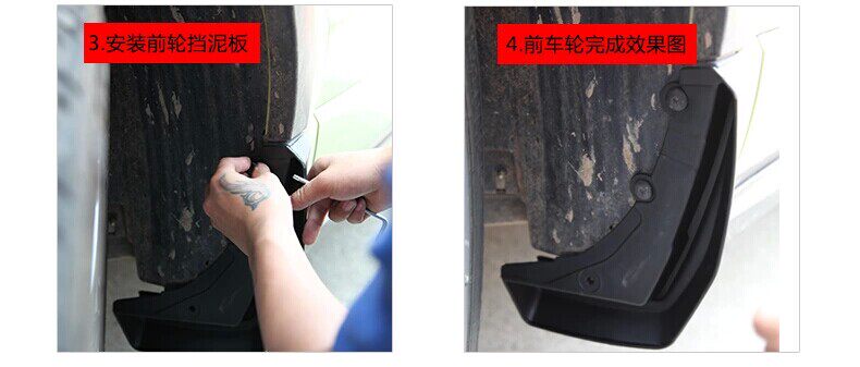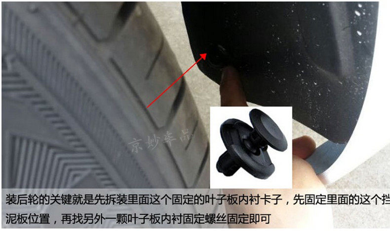 3. Поместите грязевую панель на соответствующую часть автомобиля и поместите положительное положение, чтобы сделать внешний край грязевой панели параллельными внешнему краю шины.