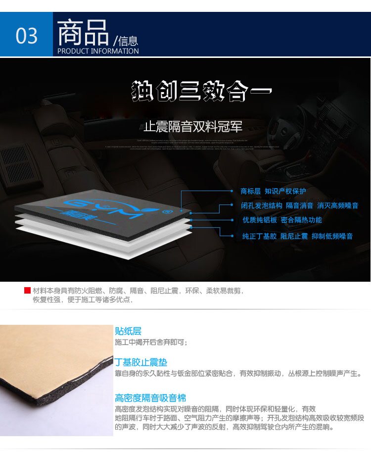 ★ Структура продукта:7 мм звукоизоляция хлопка+10 шелковая алюминиевая пластина+2 мм экологически чистого бутилового клея = 9 -миллиметровый ультрангельный звуковой изоляционный эффект