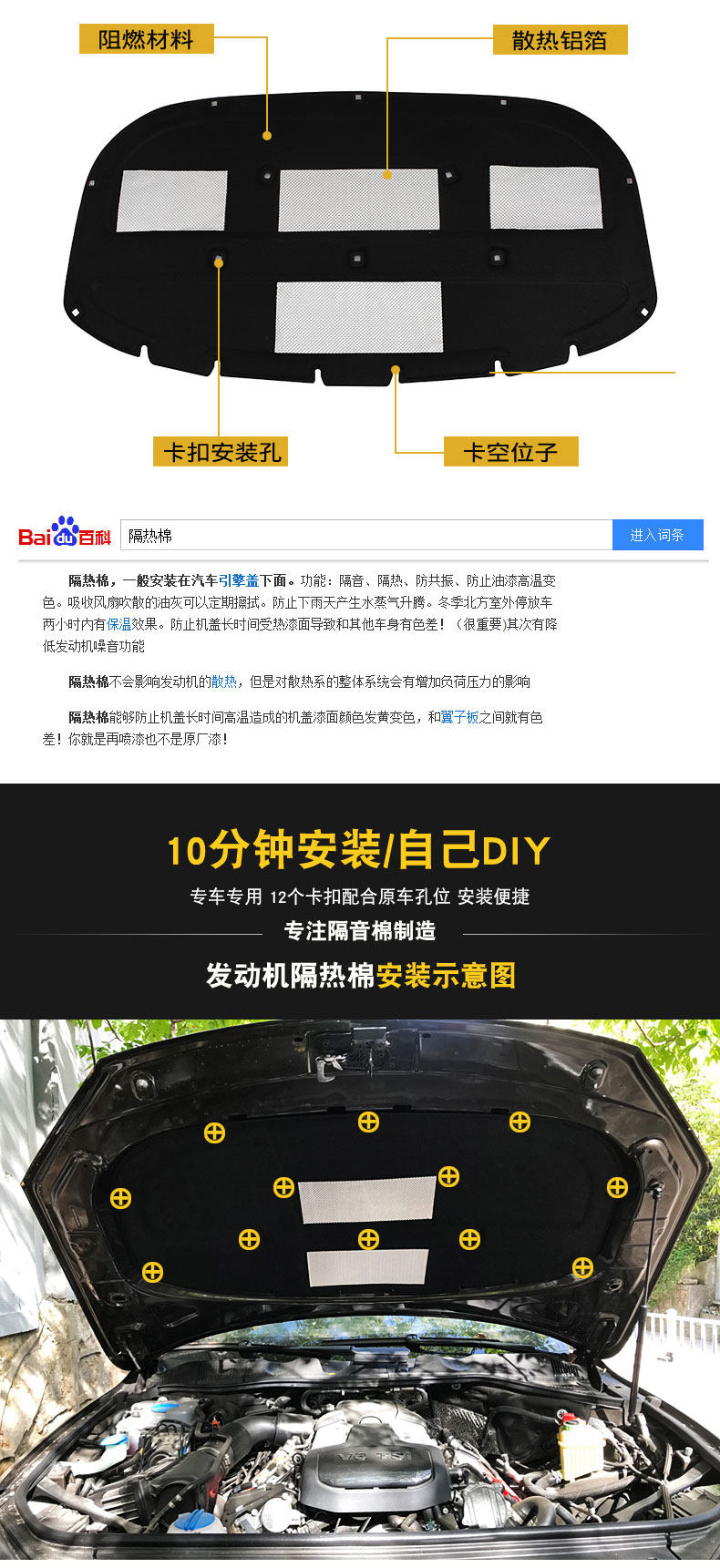 Volkswagen Ninemor Sound Isliest Ortulation Original Touareg Hot Cotton 11-18 Touareg двигатель капюшона звукоизоляция хлопок