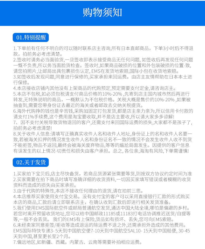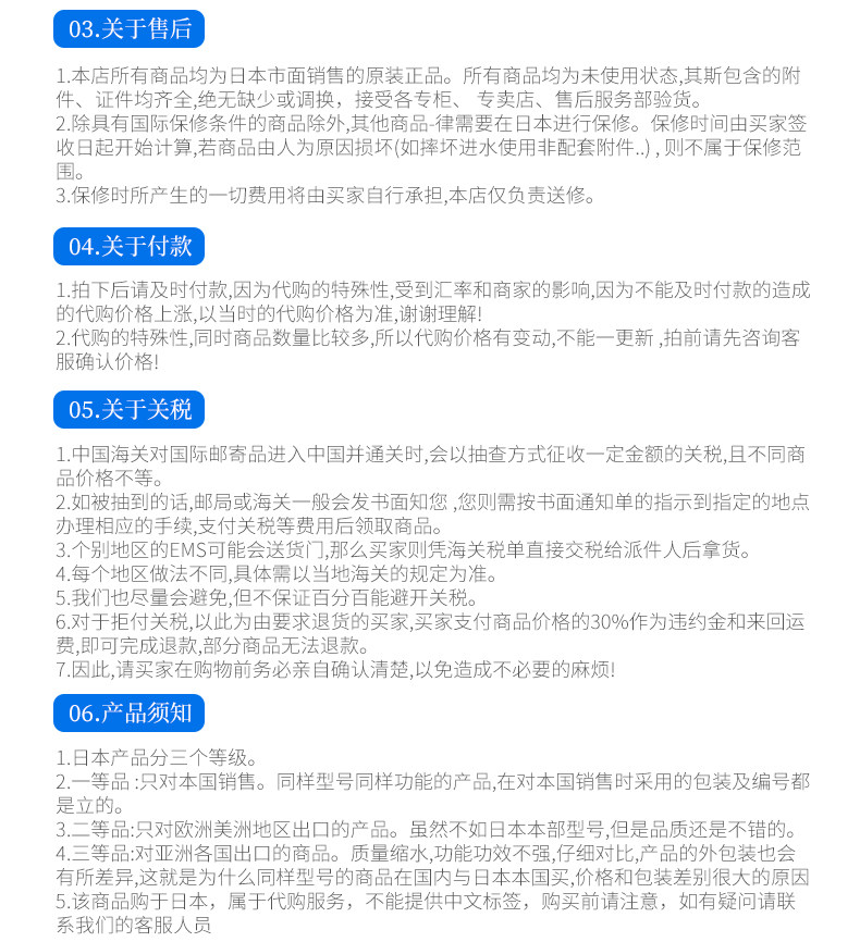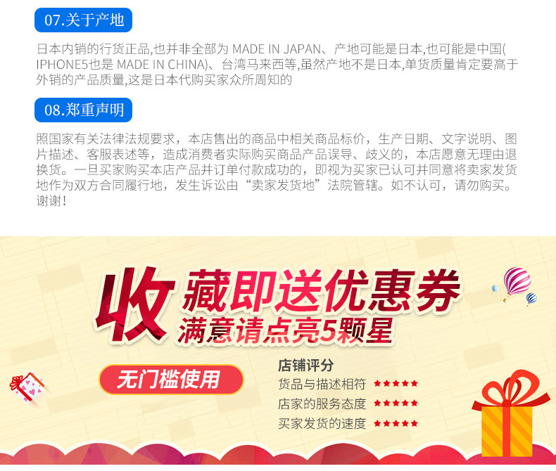 Бенбао приобретает товары для Японии и не принимает возврат и обмены.Если вам нужно возвращать и обменять по вашей собственной причине, стоимость несет самостоятельно.