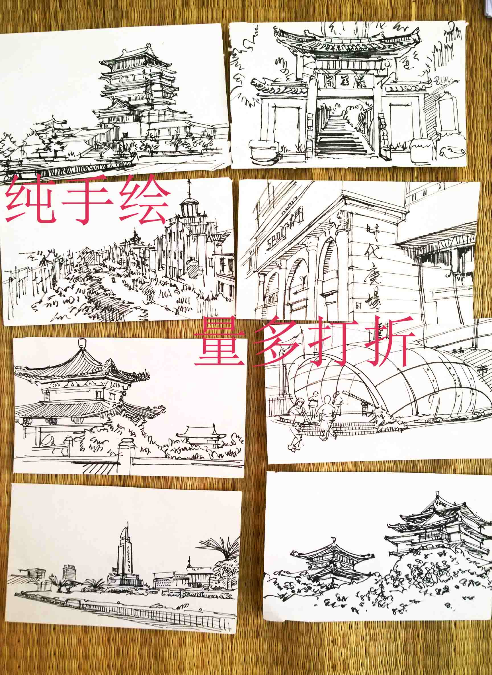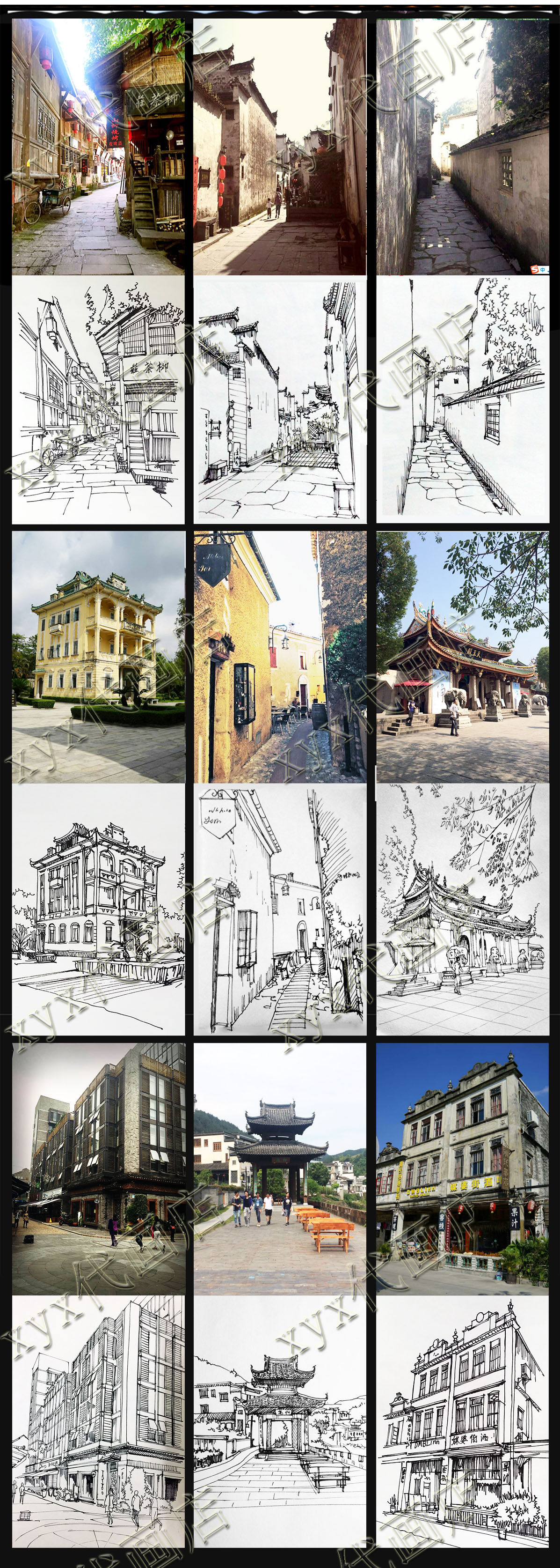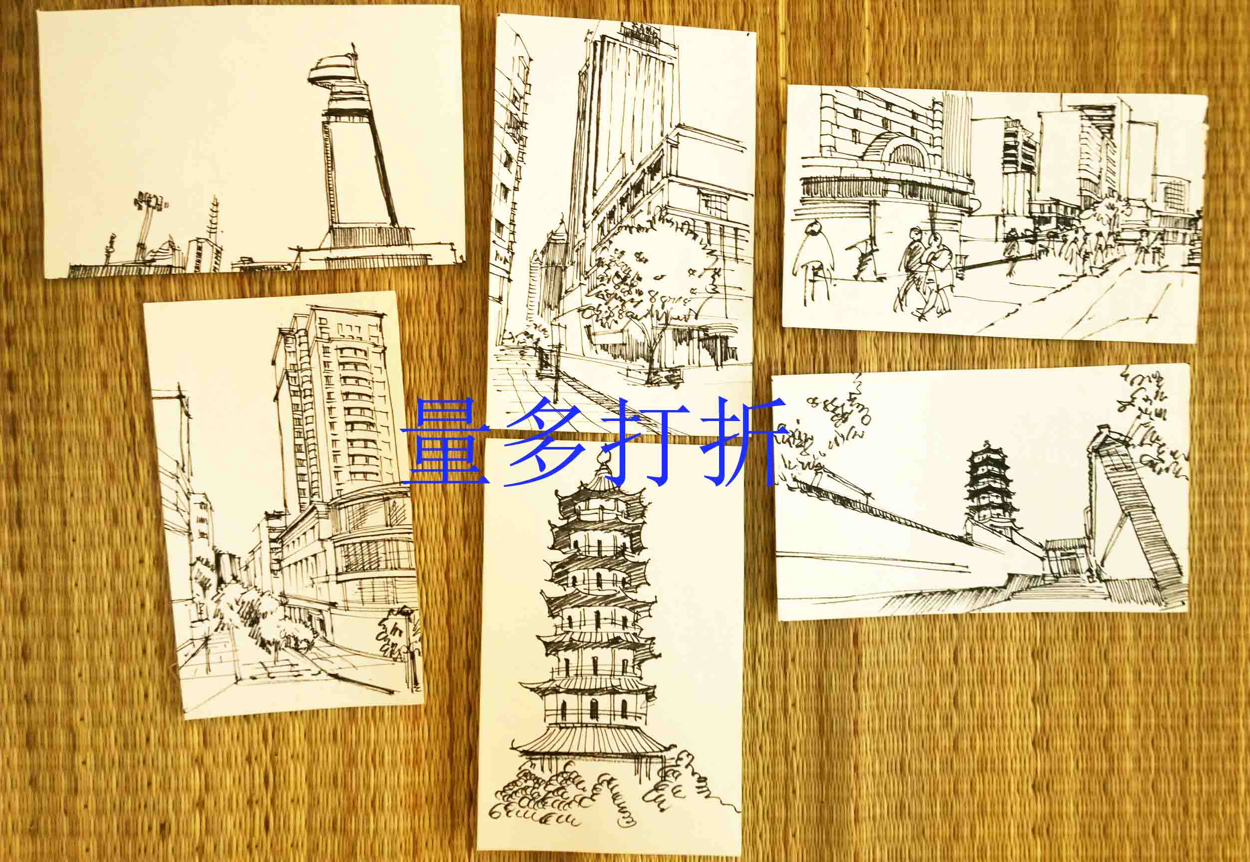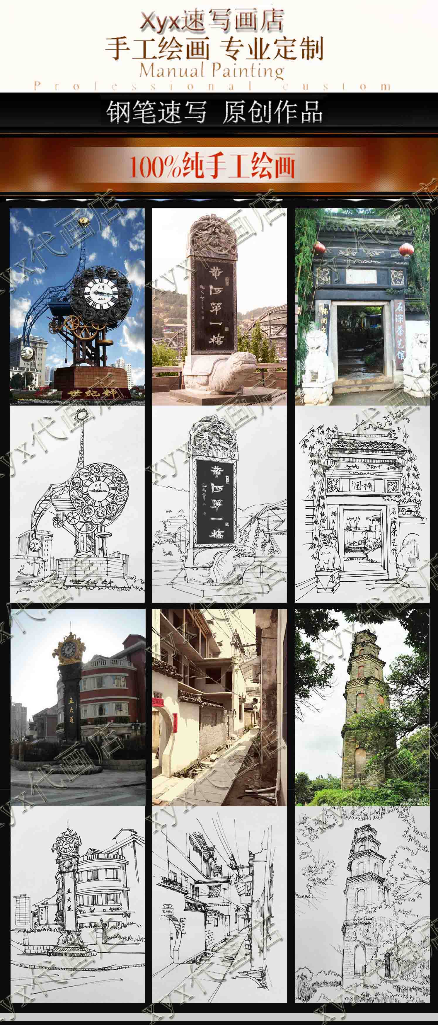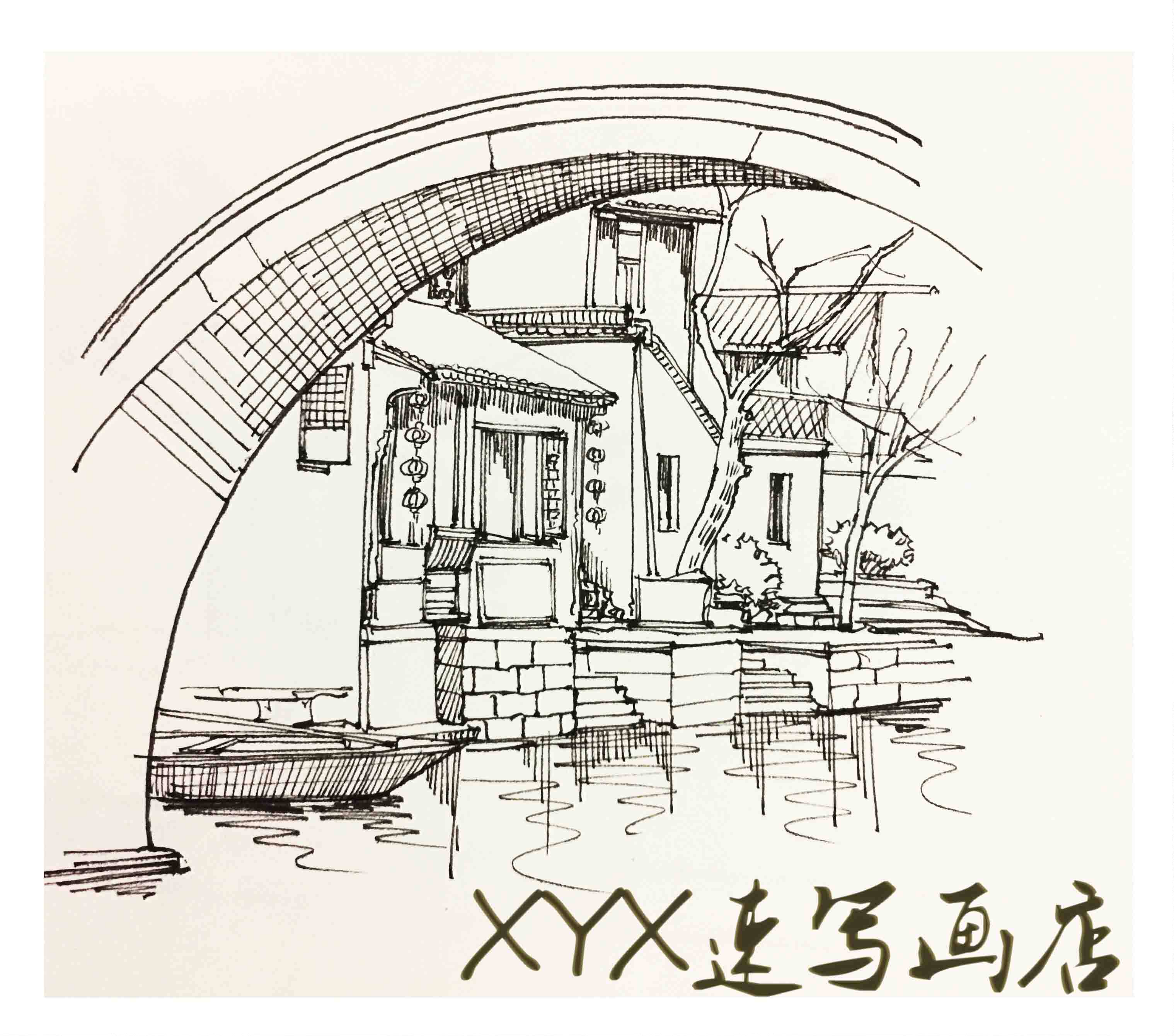 Чистое ручное агент живопись туристические достопримечательности живопись пейзаж сцены здания наброски наброски Anhui Hongcun Sketch