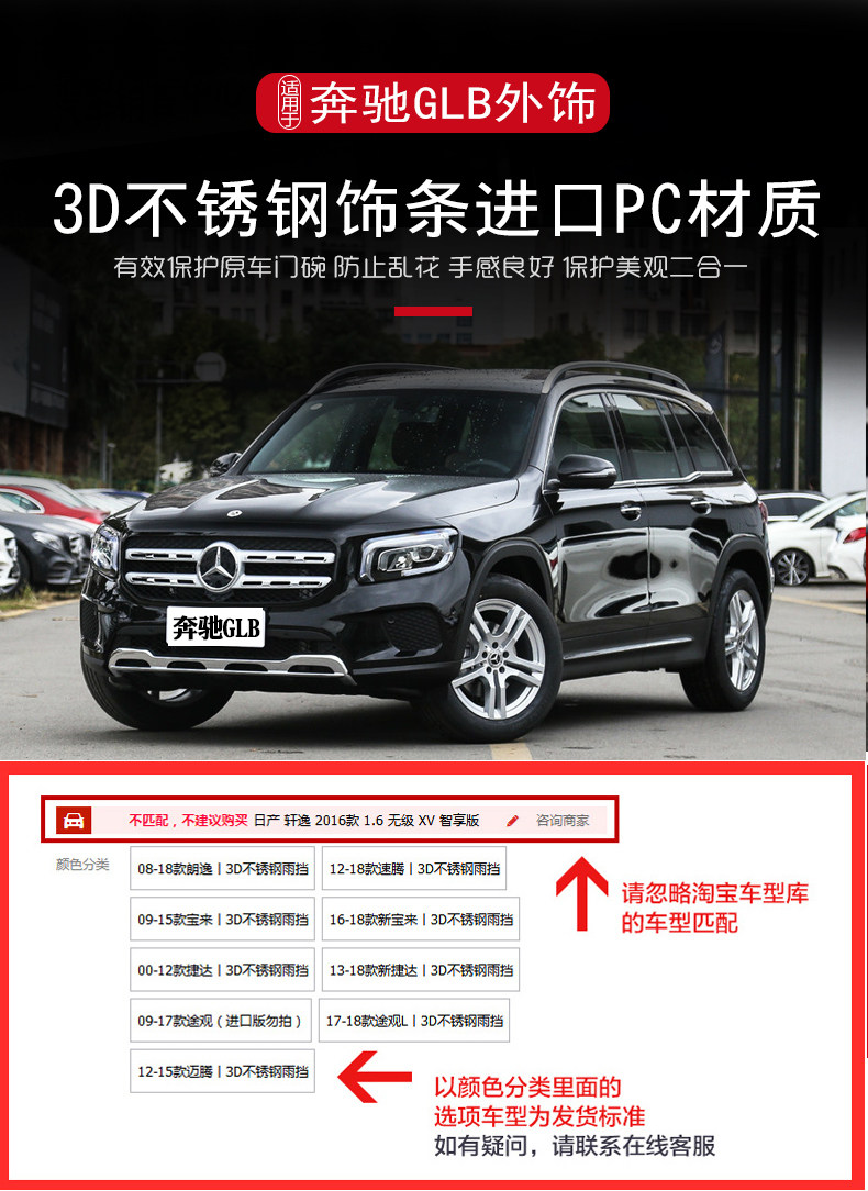 Подходит для Mercedes -Benz GLC Rain Block 19 Модели Mercedes -Benz Gla Mercedes -Benz CLB GLB GLK Modific