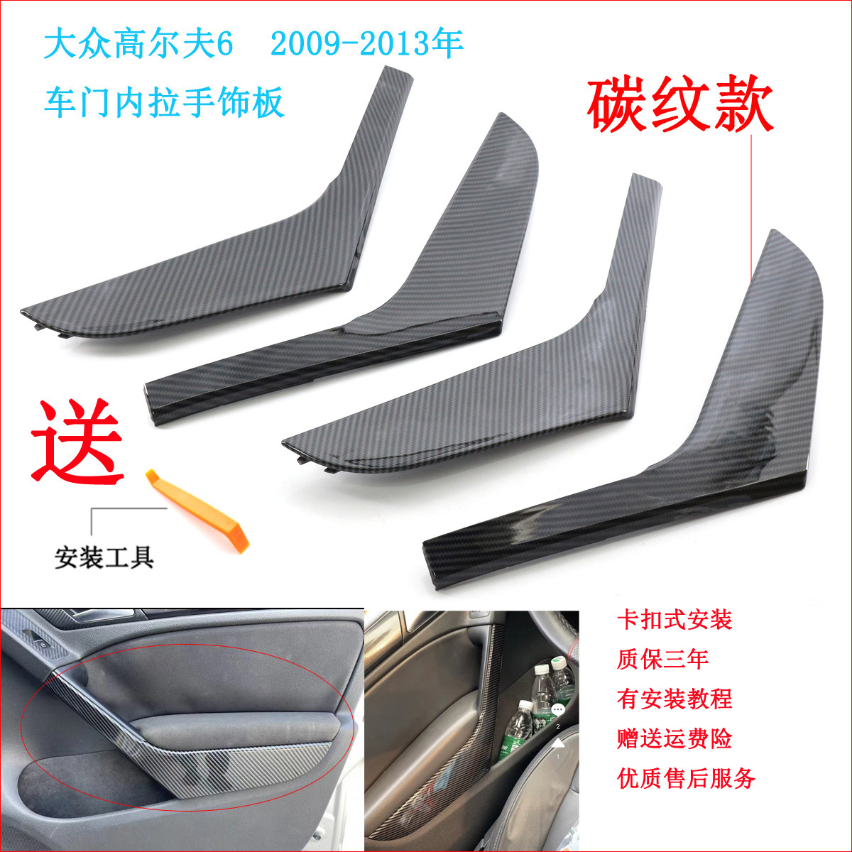 Применимо к Volkswagen Golf 6 дверной панели, покрытая рукой -в дверь GTI углеродное волокно Внутреннее ручное подлокотник