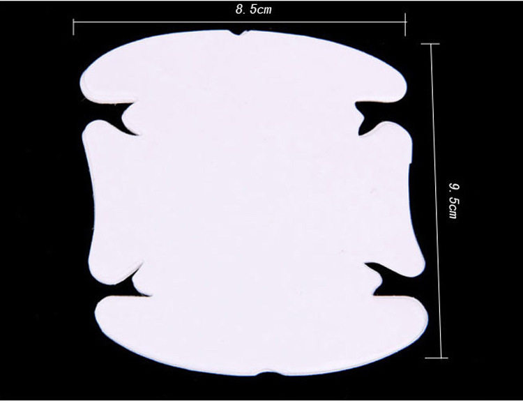 Этот продукт подходит для использования автомобиля любого цвета.Толщина 0,3 мм и сильная вязкость постоянно трескаются и царапают. Она прикреплена к дверной миске, чтобы защитить автомобильную краску и избежать царапин для ногтей из -за частых переключающих дверей.