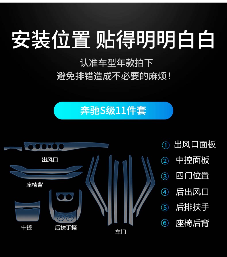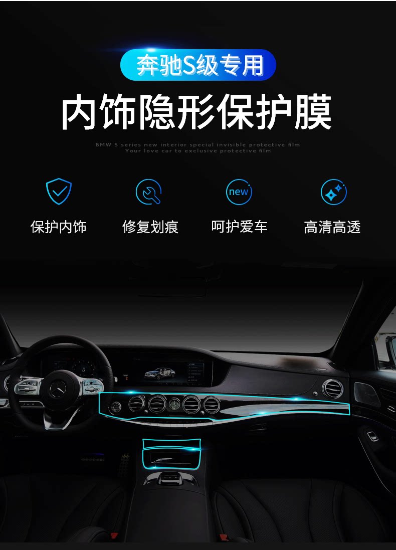 14-19 Mercedes-Benz S-Class Maybach Interior Protection Transparent Film TPU S320 S350 S450 S500