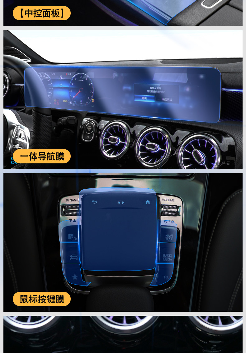 19 Mercedes -Benz's New A200L Interior Film A180L Навигация на середине -контрольной панели Прозрачная защитная пленка Модификация интерьера