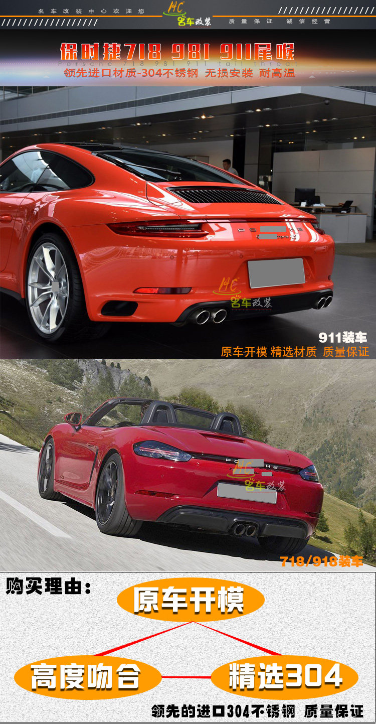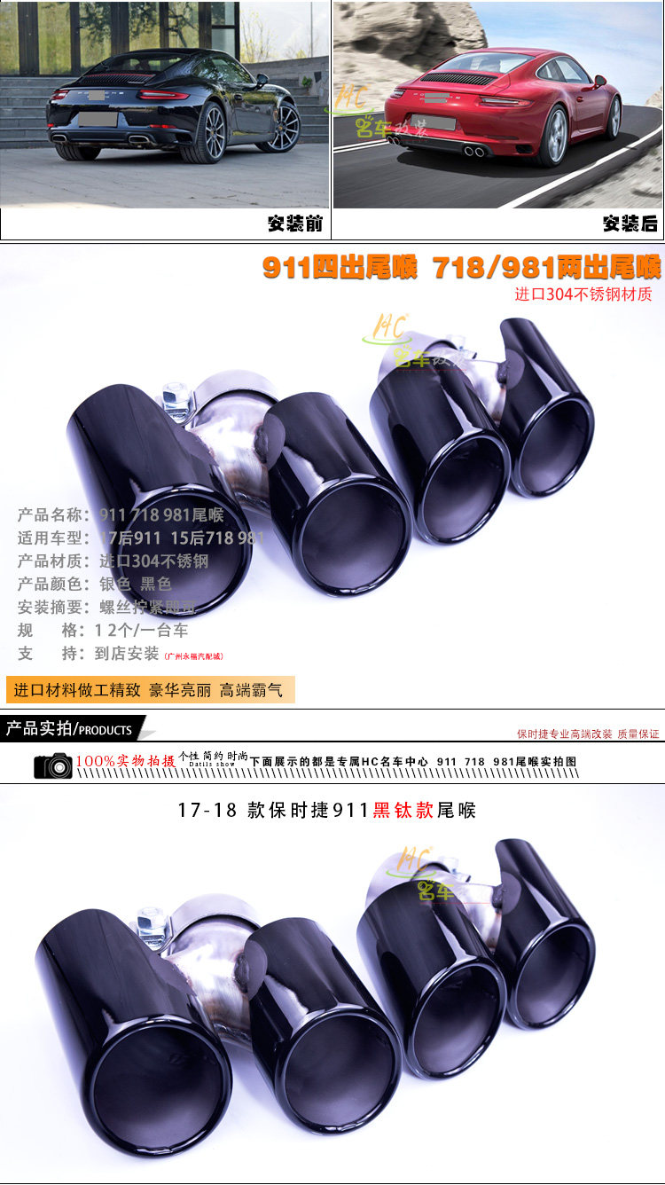 Подходит для Porsche 718 хвостовой горло Boxster718cayman991 Модификация хвостового горла 911 модификация выхлопной трубы