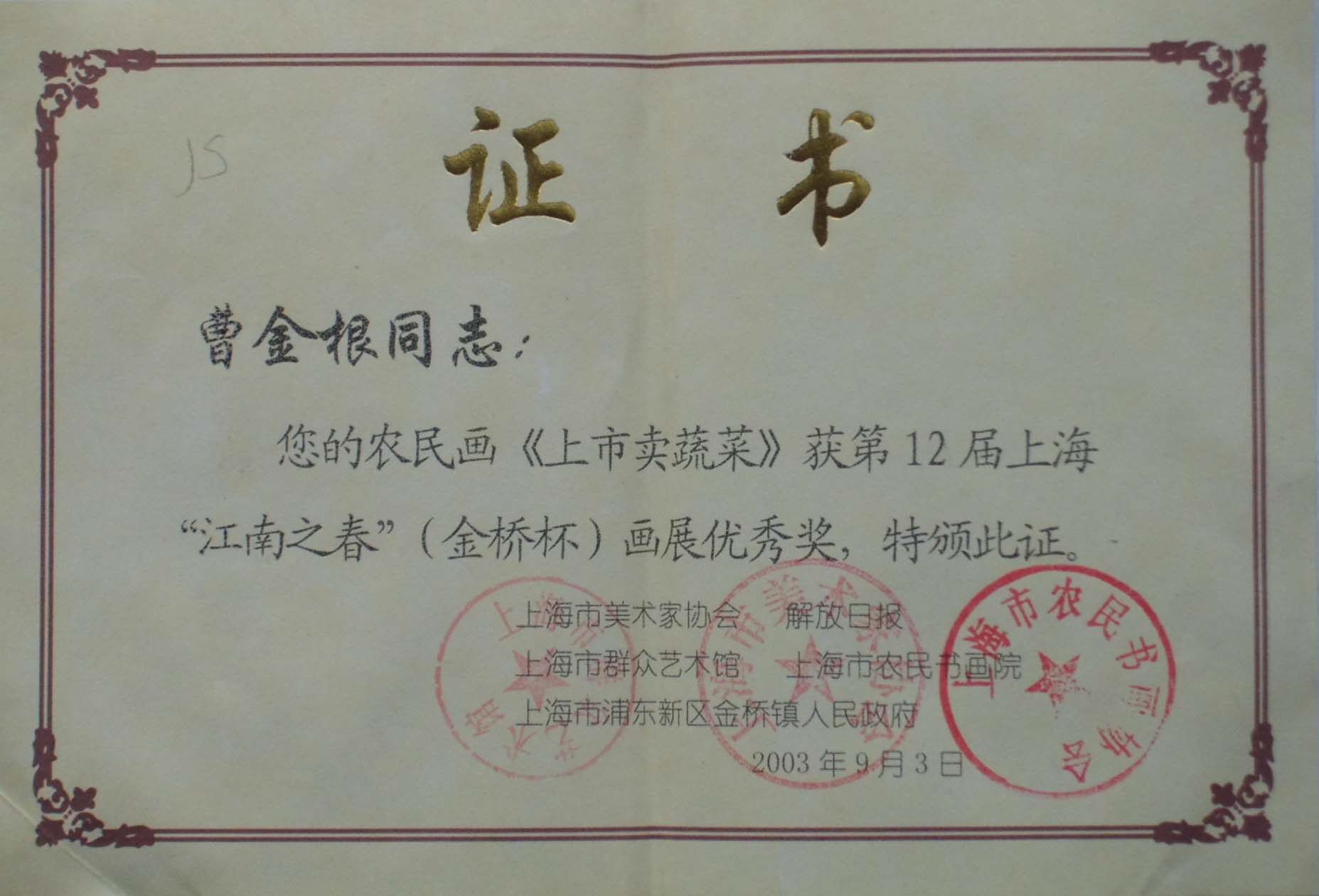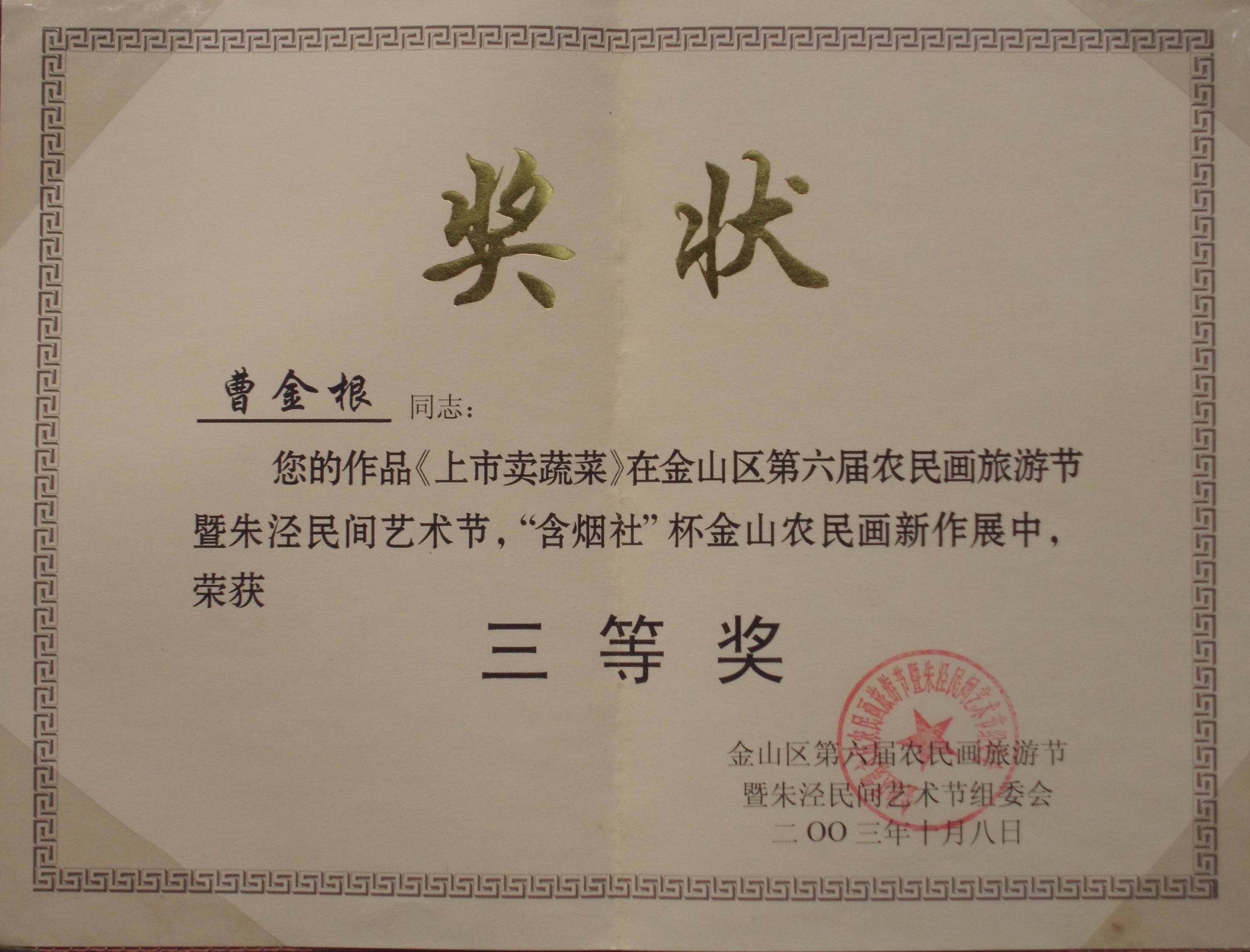 2006Год10луна18Daily была награждена народным правительством округа Джиншан&LDQUO; Джиншан Фермерский художник” название