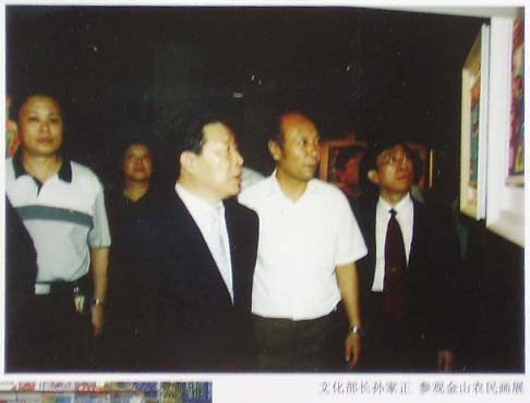 &NBSP; Sun Jiazheng, министр национальной культуры, высоко оценил картины фермеров Джиншана, известные своими“ picasso в Китае” работает.30 -я годовщина живописи Джиншан Фермеры, главы китайской народной литературы и ассоциации художников, объявившей 18 октября 2006 года в Творческом центре № 18, Шанхай Бунд Бунд, который китайский фермерский исследовательский центр был официально создан в Шанхайском Джиншане Пейнтер, Цао Джиндден - один из художников.