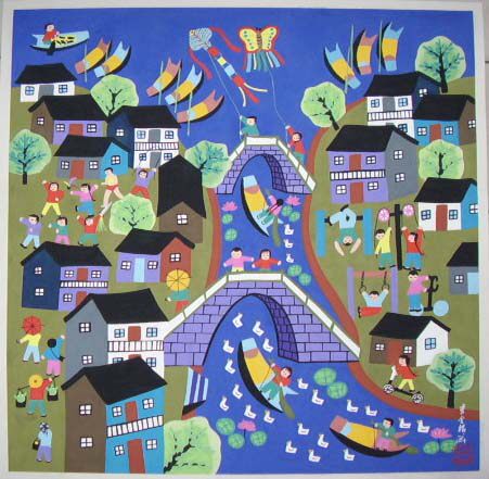 «Современный древний город» (40 см*40 см) Джиншан Фермеры рисуют оригинальные произведения чистые руки