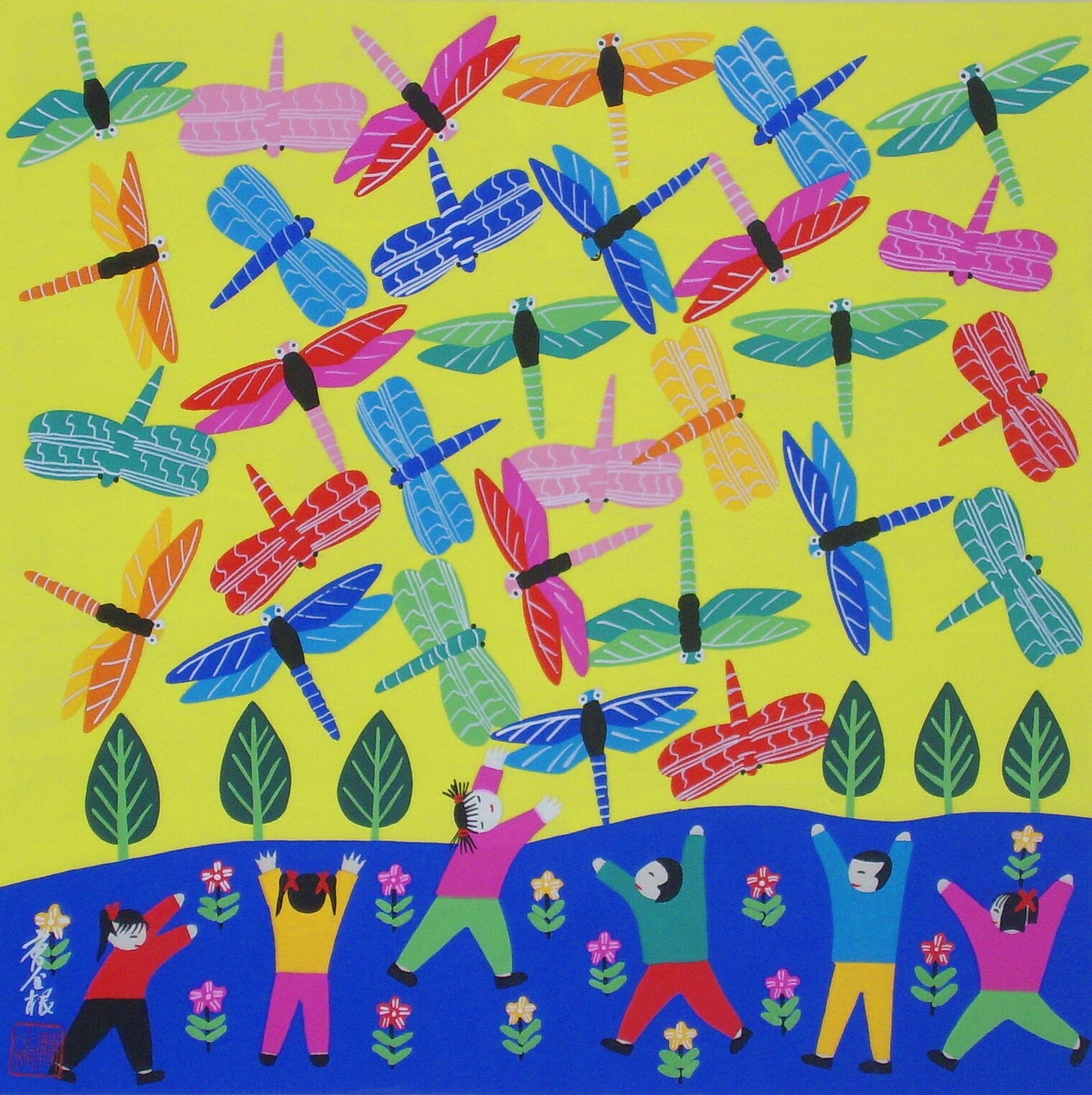 «Поймай стрекоз» (40 см*40 см) Джиншан Фермеры рисуют Цао Цзинген Оригинальные работы ЧИСТО
