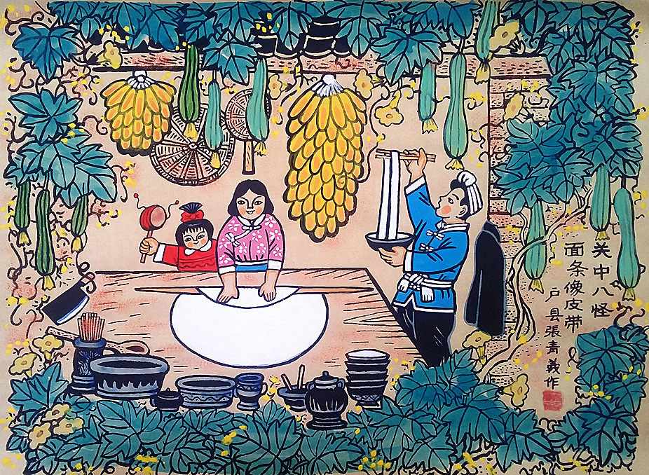 Ручная лапша Biangbiang лапша восемь монстров лапша лица, фермер, фермеры округа, фермеры, вытягивающие размер 53x38см