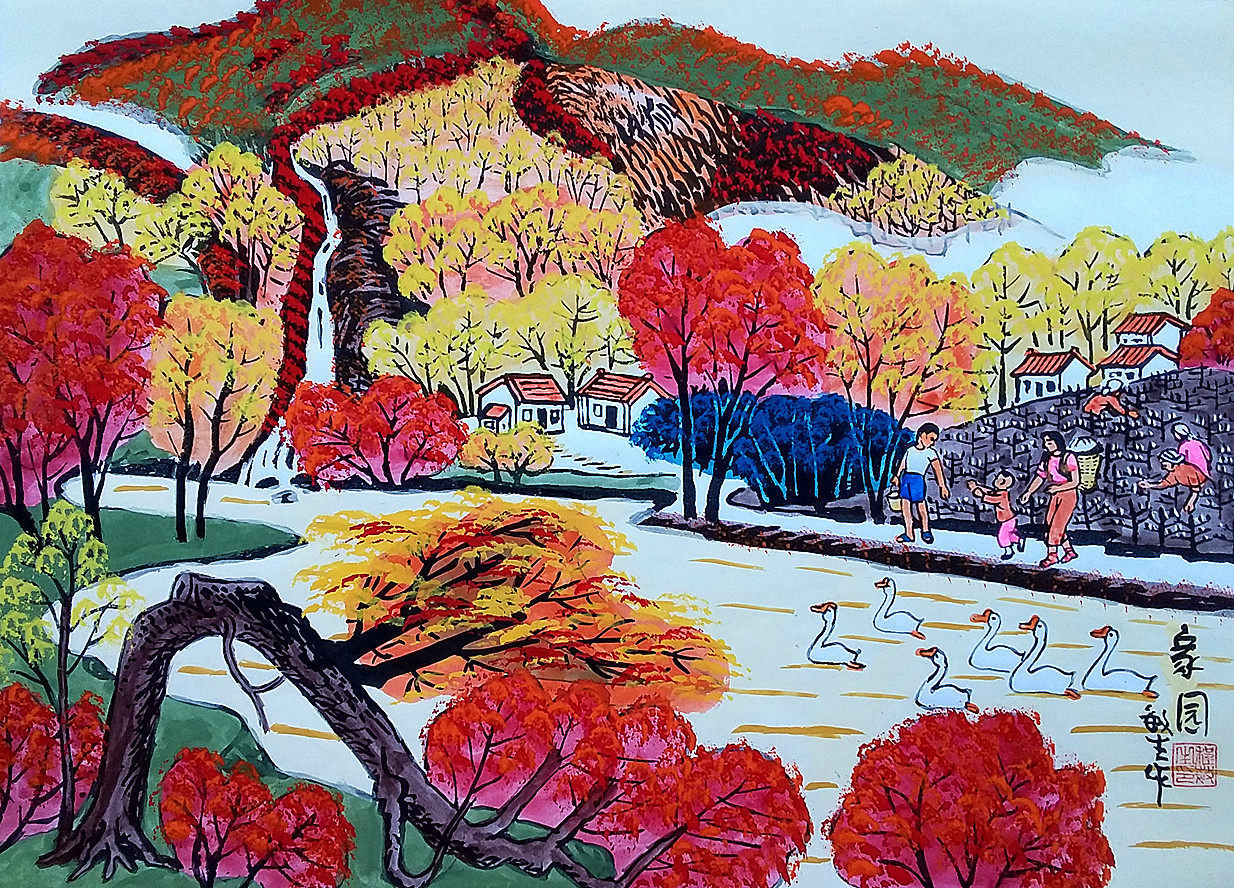 Jiayuan сельская дома добыча осень Meijing Chengmin Shenghu Farmers рисует Grand View Grand View Grand View Painting Размер 52x38см
