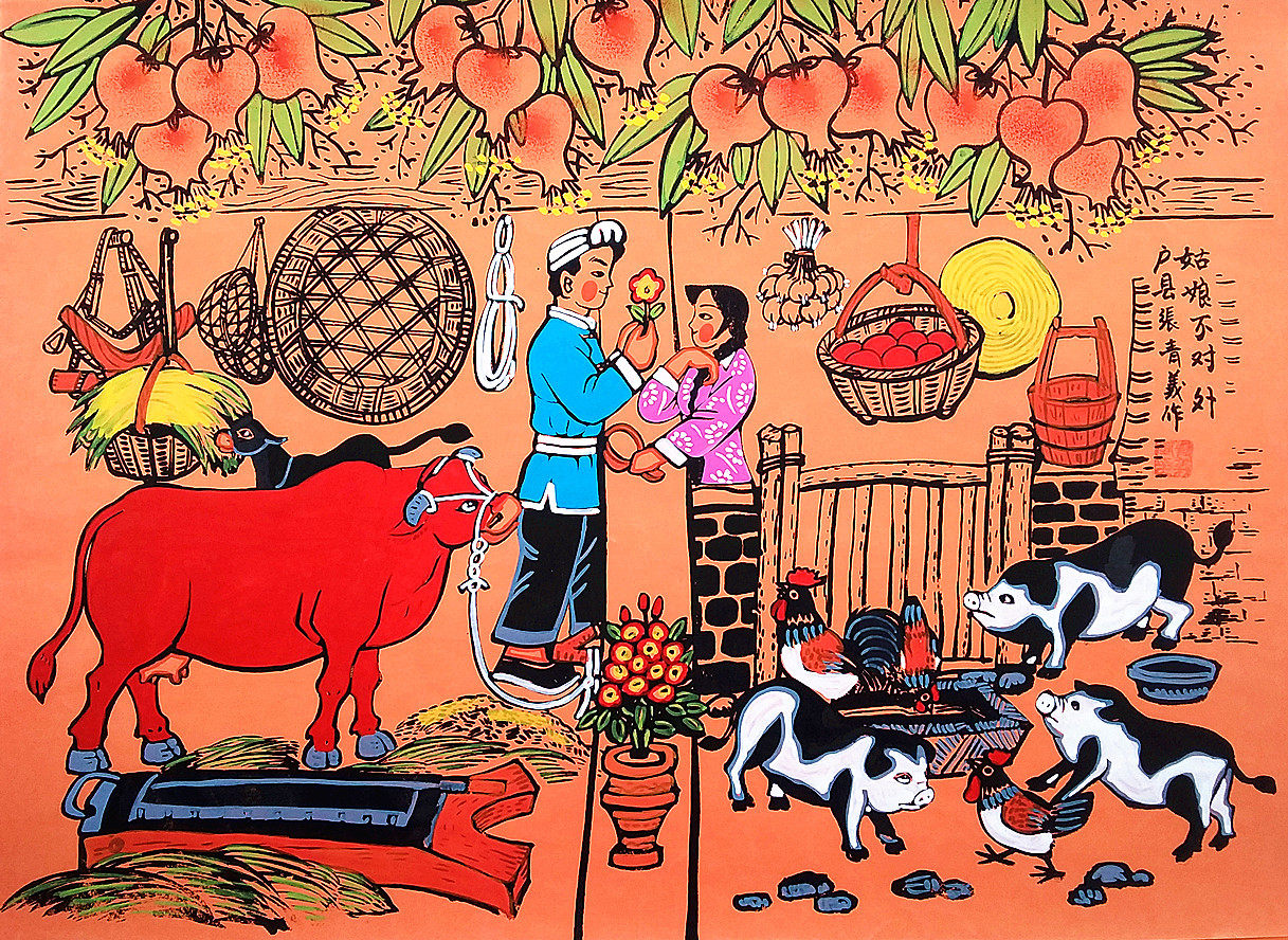 Говоря о любви, молодой любви, восемь чудаков Шэньси, Чжан Цинъи, крестьянская картина округа Сианьху, размер 52x38см
