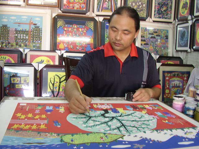 Работа 1989 года «куриная музыка» была выбрана в Гонконг.&Ldquo; Shanghai Folk Art выставка”.