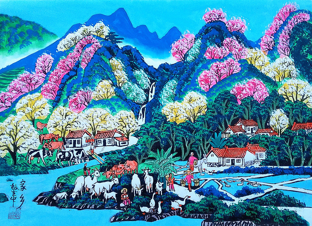 Junxiao Chunxiao сельский весенний отель Niu Yang, графство Ченгмин Шенху, размер живописи фермеров 52x38 см.