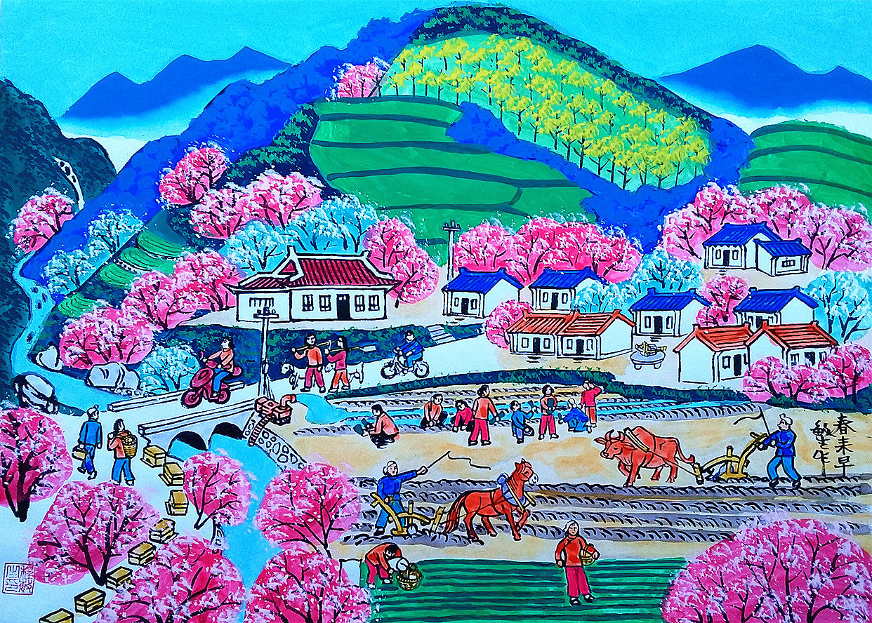 Весна раннее сельское весеннее весеннее сельское хозяйство, сельскохозяйственная цивилизация, размер живописи фермеров округа Ченг Шенгу.