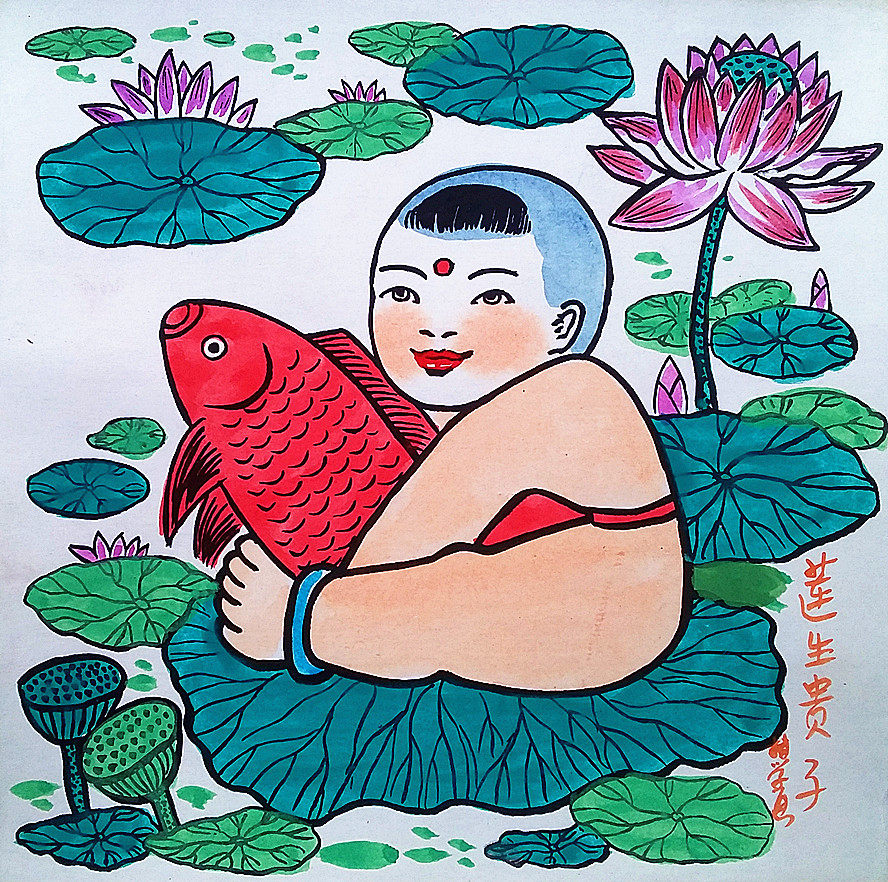 Лиан Шенг Гизи имеет оставшуюся спальню на дому в отделке каллиграфии и рисования Fuwa Обнимайте рыбные фермеры, рисовать размер 25x25 см