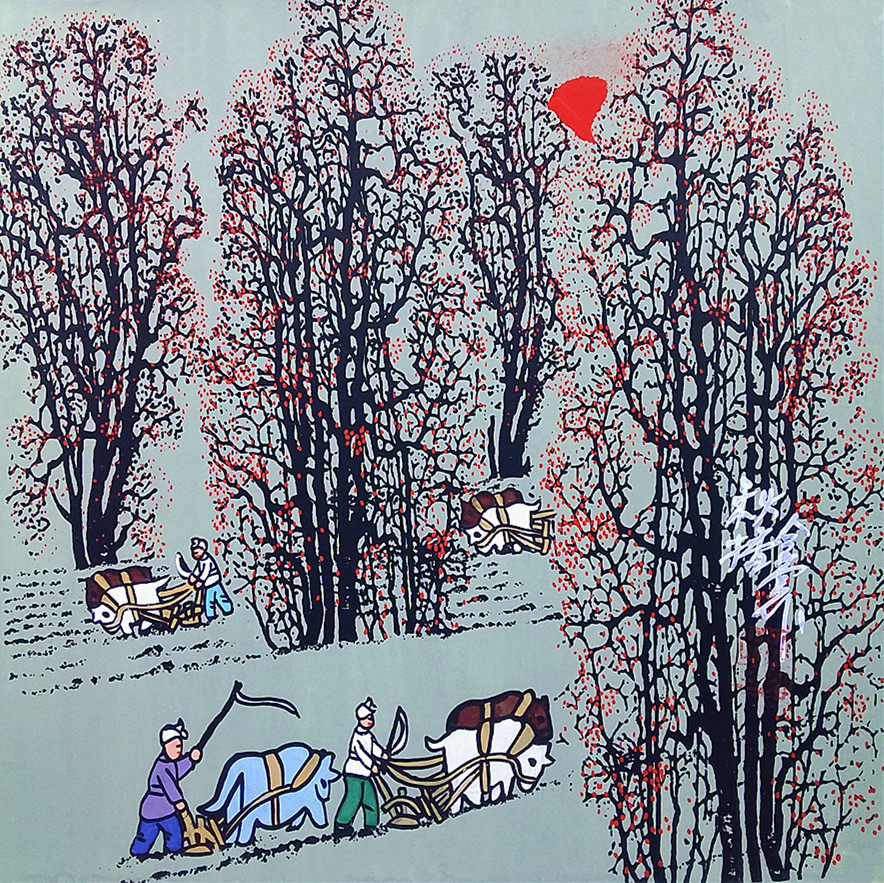 Осенний вещательный народное искусство ландшафт лесной лес niu gengtian фермерские угодья фермеры размер 25x25 см.
