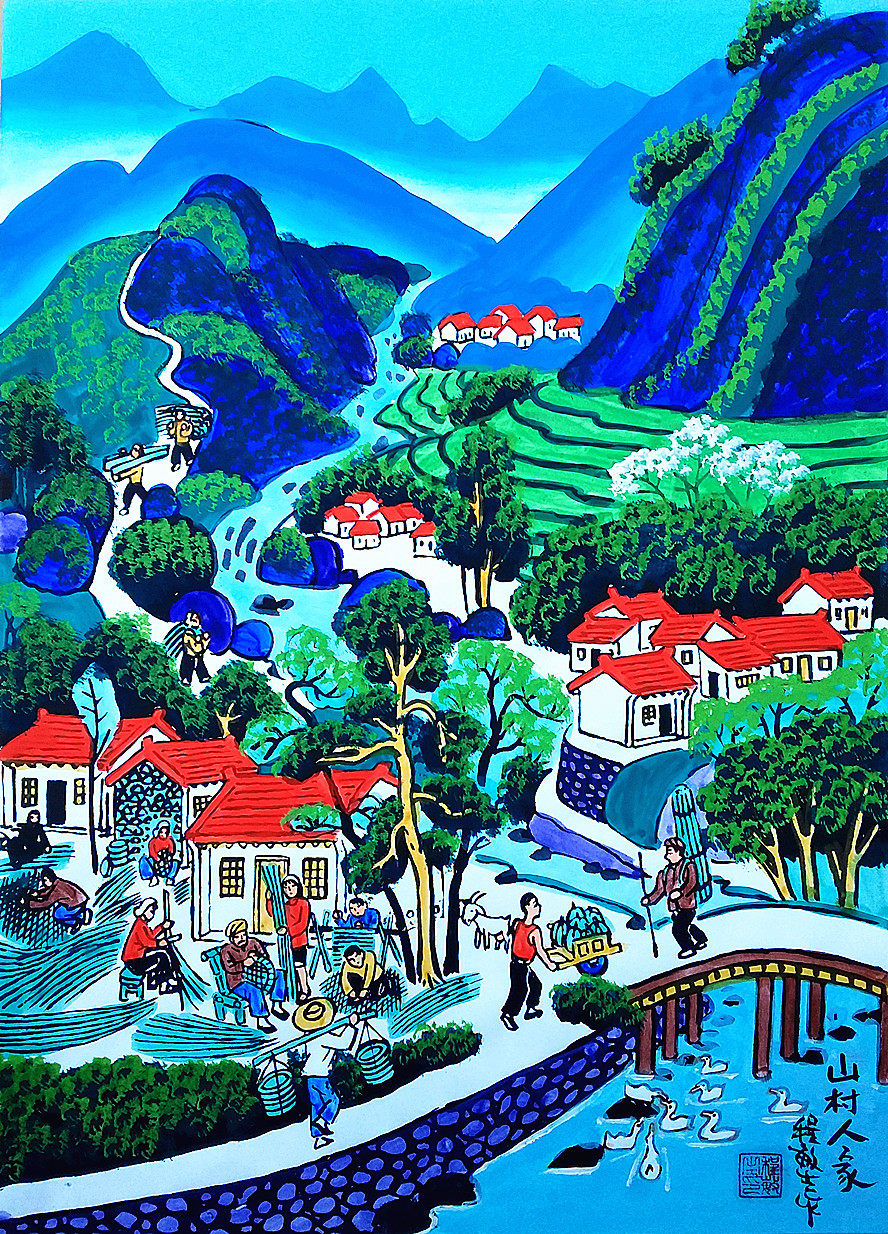 Горная деревня, Жуксианская горная городка, зеленая вода зеленая вода Цингсхан живописные пейзажи Ченгмин Шенгу Фермеры Рассказы