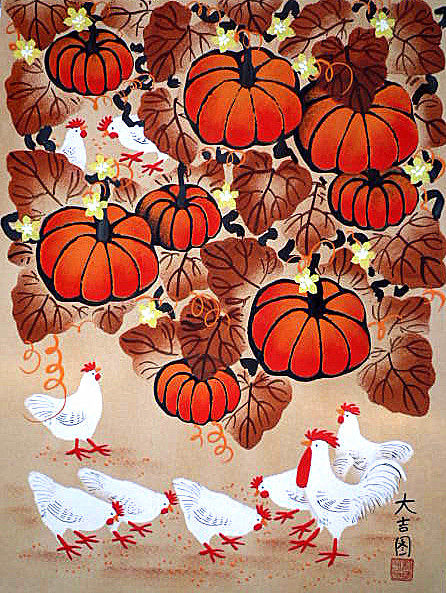 Dajitu тыква курица домашняя спальня украшения каллиграфия и подарки подарки в Shaanxi Huxian Farmers Painting Size 52x38 см.