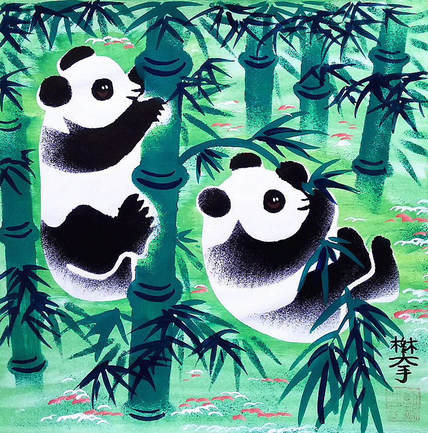 Панда иностранные дела Иностранная дипломатия Подарки подарки Китай Панда Фермеры Фермеры покраска размером 25x25 см.