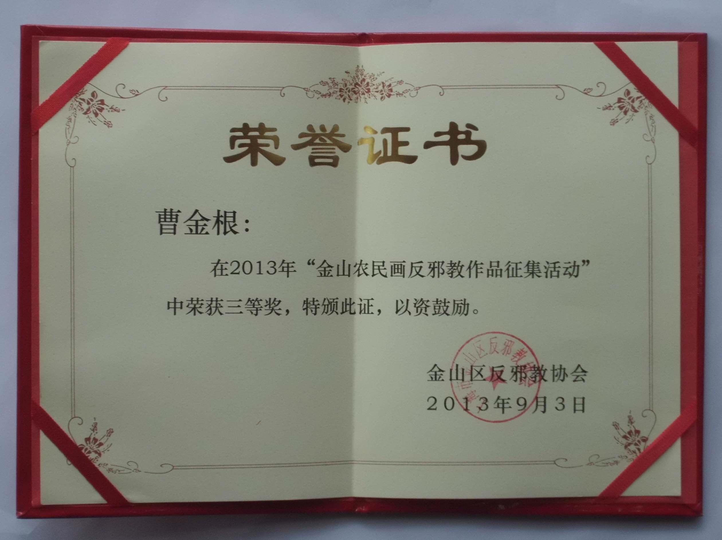 &NBSP; декабрь 2012 г. Работа "Честность Китай"&Ldquo; чашка liuhe&Rdquo; Китайский конкурс живописи фермеров выиграл финалистскую награду, и его работы были включены в коллекцию.