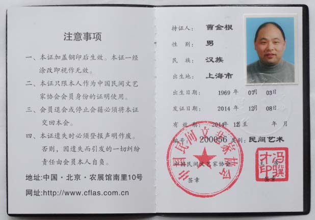 Цао Цзинен является членом Ассоциации Шанхайских народных художников.