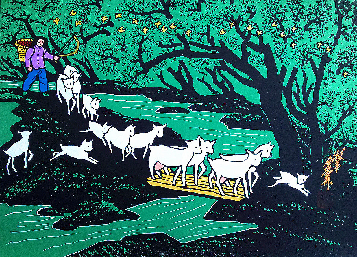 Muyang сельская овечья группа отель Hotel Farm Music Institute украшение Cao Quantang Shaanxi Huxian округа Фермеры Расширяйте размер 52x38 см.