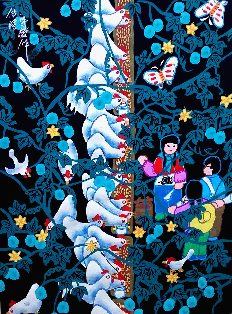 Куриные девушки сельские гостиницы сельский отель фермерский дом Лю Янао Шэнси Хусиан Фермеры рисунок 52x38см.