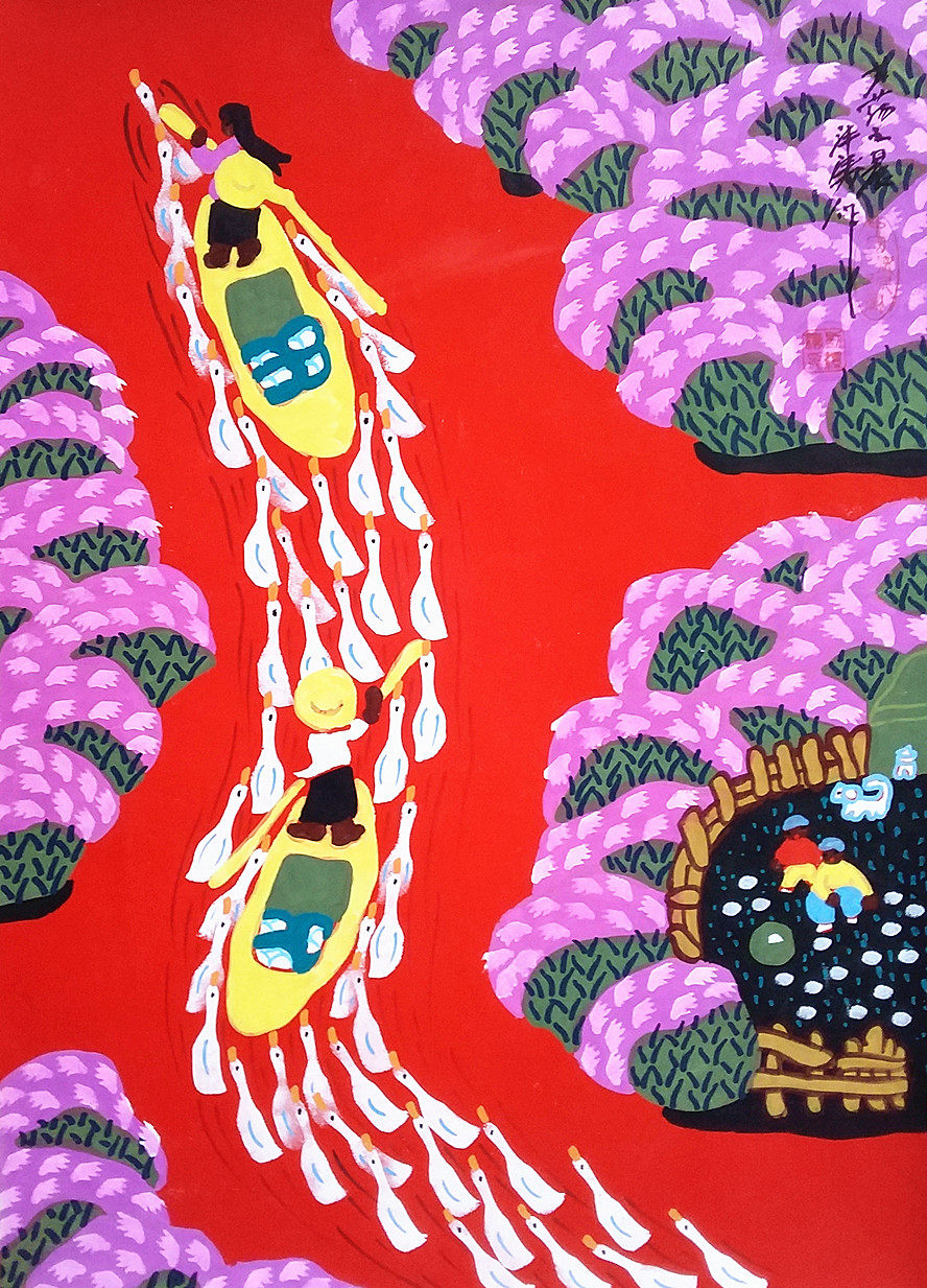 Luyang Morning Rowing Pastoral Duck Group Hotel Farmhouse Liu Fengtao County Farmers Painting 52x38 см ручной работы