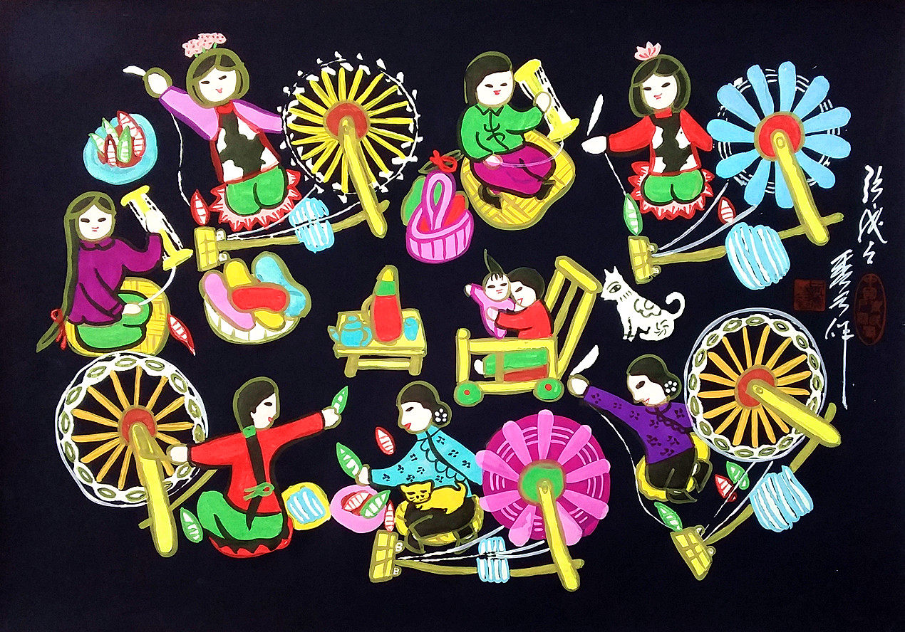 Текстильная линия сельская женская линия текстильной линии отеля отель живопись Люди Ятао Хаус округ фермеры.