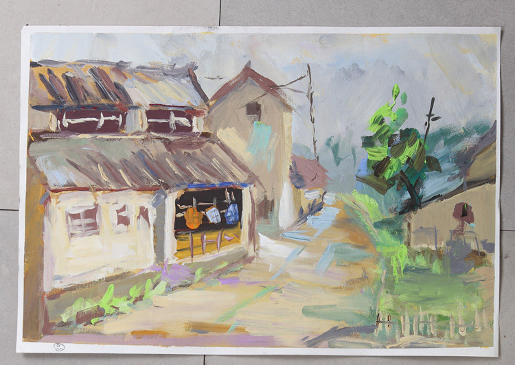 Пинг -ландшафтный ландшафтный ландшафт Работа живопись Zhouzhuang Xidi Пейзальная живопись 4 открытый лесной ландшафт цвет wuyuan color powder sketching