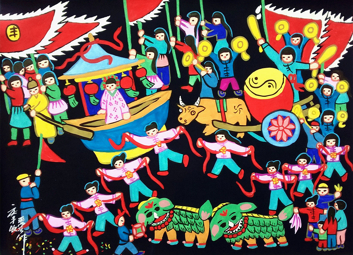Цинфенг Цзеянгеге засуха засуха Фольклорная картина Фольклорная живопись Счастья Фермеры Округ Хаус живопись 52x38см ручной работы