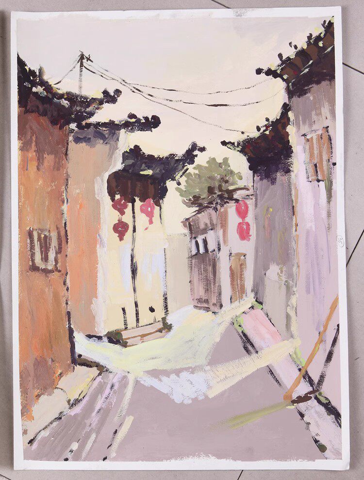 Цветная ландшафтная живопись Wuyuan Water Powder Painting 4 Открыть анхуи Hongcun Pingshan West Daihui Школа строительства водяной порошковой эскиз ландшафта