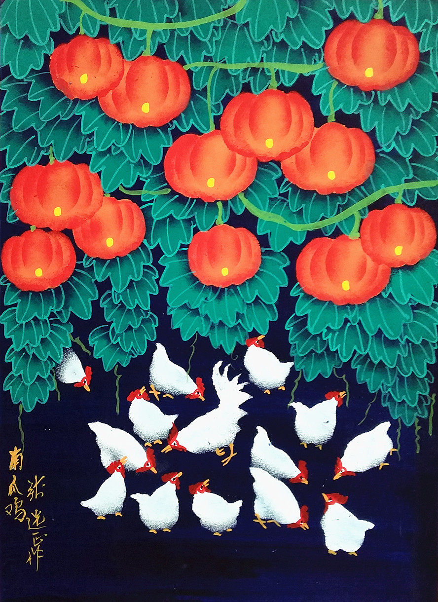 Тыквенная курица благоприятные цветы Руйи и птицы украшения, украшающие гостиную Чжан Сюаньчжэн Чженху округа Фермеры Размер 52x38см