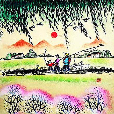 Сельская дикая местность зеленые пейзажи пастырская жизнь фермерский дом Чжанццингиху округа Фермеры Размер 25x25см