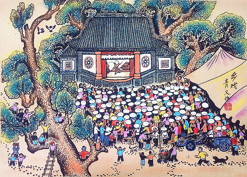 Просмотр драматического театрального театра, поющий народной ферму, крестьянскую картину размер округа Фермер 52x38 см.