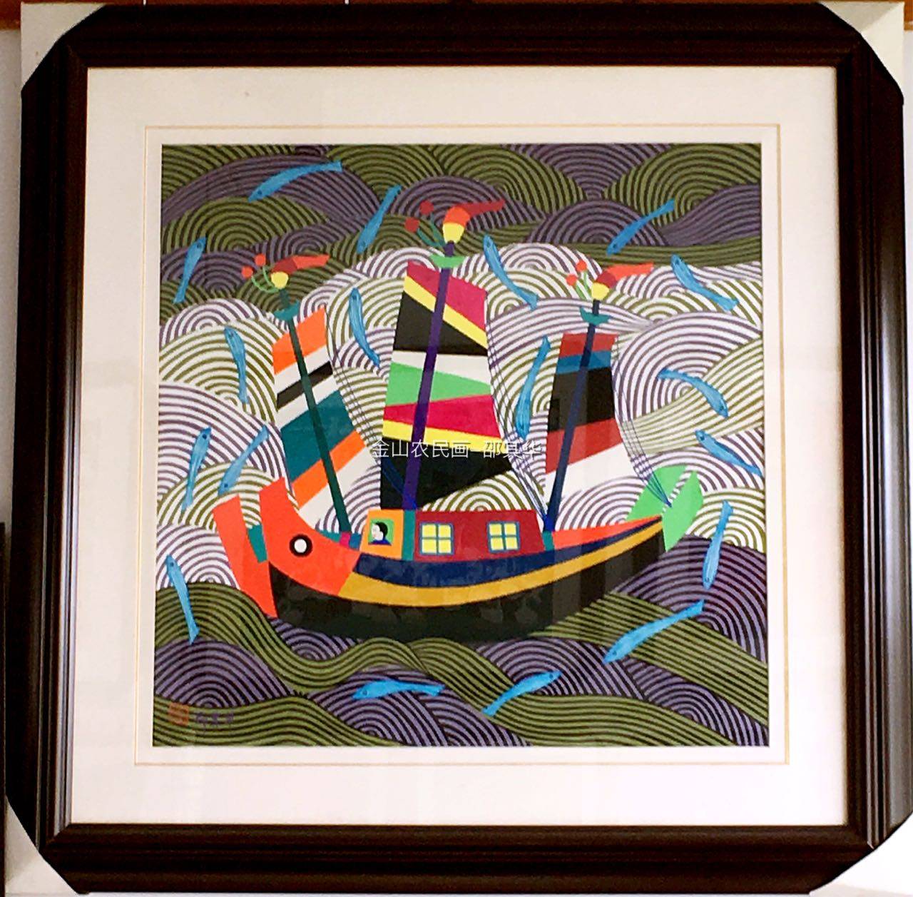 Джиншан Фермерская живопись "Парусная лодка" с рамой, рисует ядро 40cmx40cm Shao Qihua's Original Works