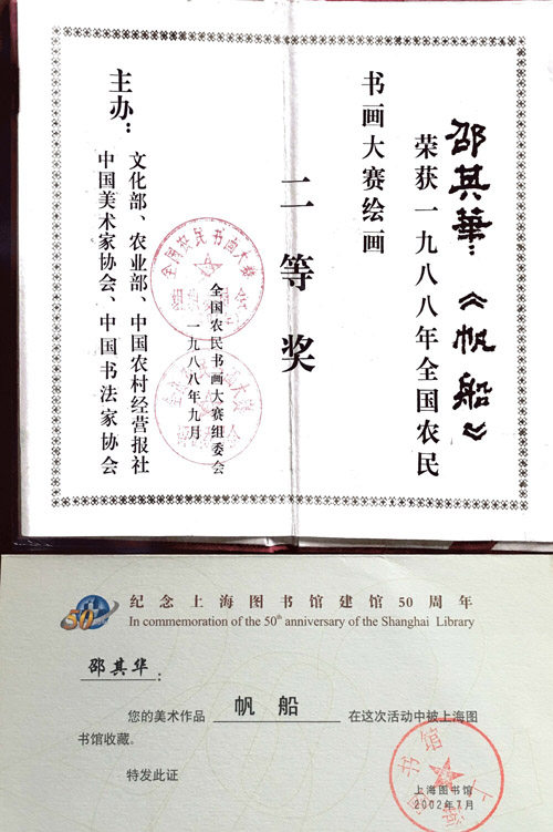 В 1988 году национальный конкурс по крестьянской каллиграфии и живописи выиграл второй приз
